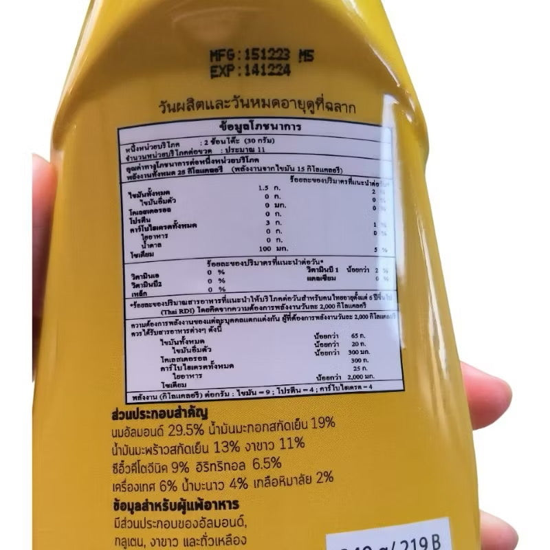 พลังงานทั้งหมด 25 กิโลแคลอรี่ พลังงานจากไขมัน 15 กิโลแคลอรี่