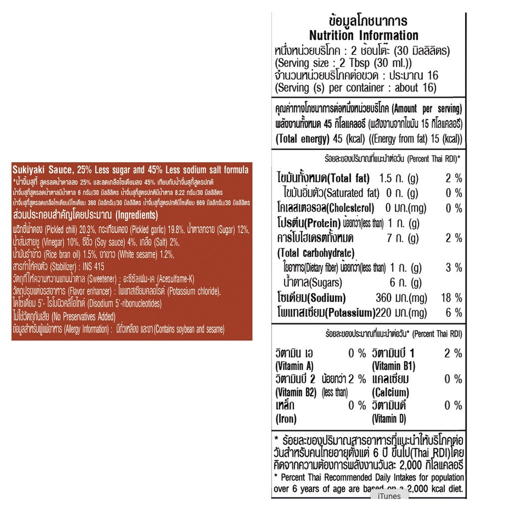 น้ำจิ้มสุกี้ สูตรลดโซเดียม 25% และ ลดน้ำตาล 40% เมื่อเทียบกับน้ำปลาสูตรปกติ ซึ่งโซเดียมเป็นสาเหตุหนึ่งของการเกิดโรคความดันโลหิตสูง อันนำไปสู่โรคอัมพฤกษ์ อัมพาตและโรคหัวใจขาดเลือด พร้อมคงรสเค็มด้วยเกลือโพแทสเซียม (เกลือชนิดเดียวกับที่พบในผักและผลไม้ ) มีคุณสมบัติเด่นช่วยลดความดันโลหิตได้เหมาะกับผู้รักสุขภาพเพื่อลดโอกาสเสี่ยงของการเกิดโรคความดันโลหิตสูง หรือผู้มีปัญหาโรคความดันโลหิตอยู่แล้ว