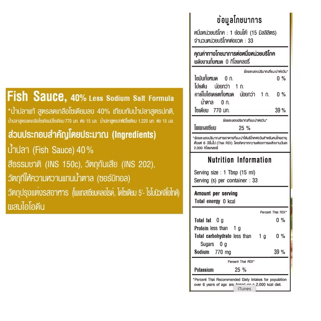 - น้ำปลาแท้ สูตรลดโซเดียม 40% ผลิตจากปลากะตักชั้นดี ลดโซเดียมลง 40% เมื่อเทียบกับน้ำปลาสูตรปกติ ซึ่งโซเดียมเป็นสาเหตุหนึ่งของการเกิดโรคความดันโลหิตสูง อันนำไปสู่โรคอัมพฤกษ์ อัมพาต และโรคหัวใจขาดเลือด พร้อมคงรสเค็มด้วยเกลือโพแทสเซียม (เกลือชนิดเดียวกับที่พบในผักและผลไม้) มีคุณสมบัติเด่นช่วยลดความดันโลหิตได้ เหมาะกับผู้ที่รักสุขภาพ เพื่อลดโอกาสเสี่ยงของการเกิดโรคความดันโลหิตสูงหรือผู้มีปัญหาโรคความดันโลหิตอยู่แล้ว