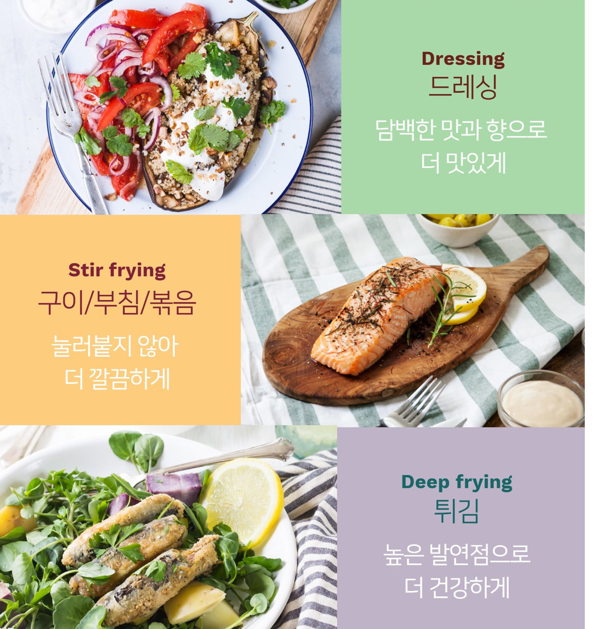 - ทนความร้อนสูง เหมาะกับการ ทอด, ผัด, อบ, สลัด